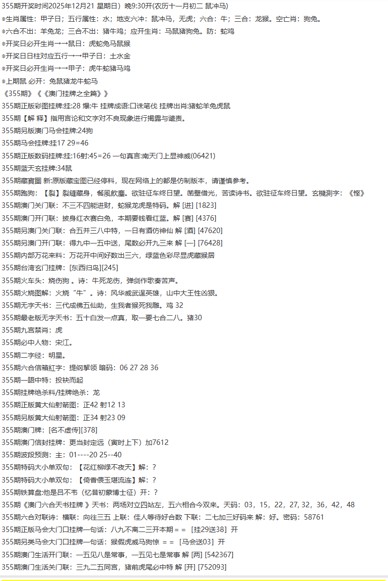 354期:前后肖必中【后肖后肖】开:鼠30错 |