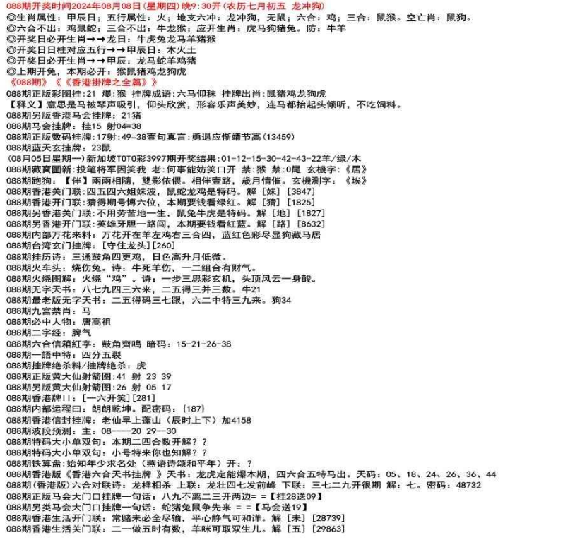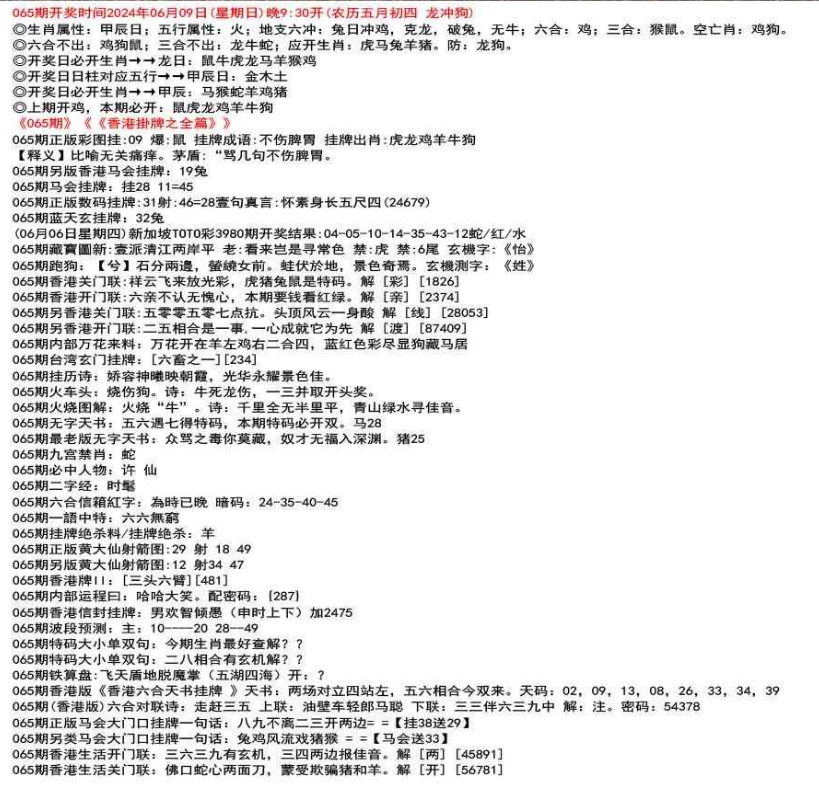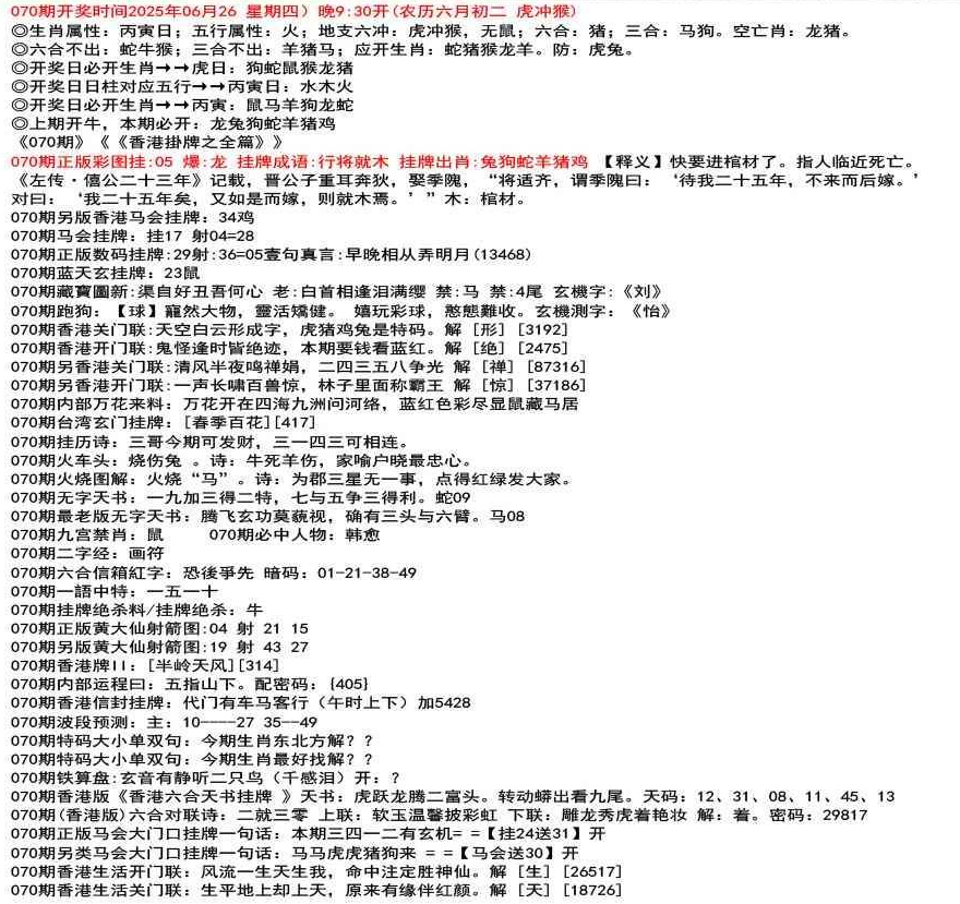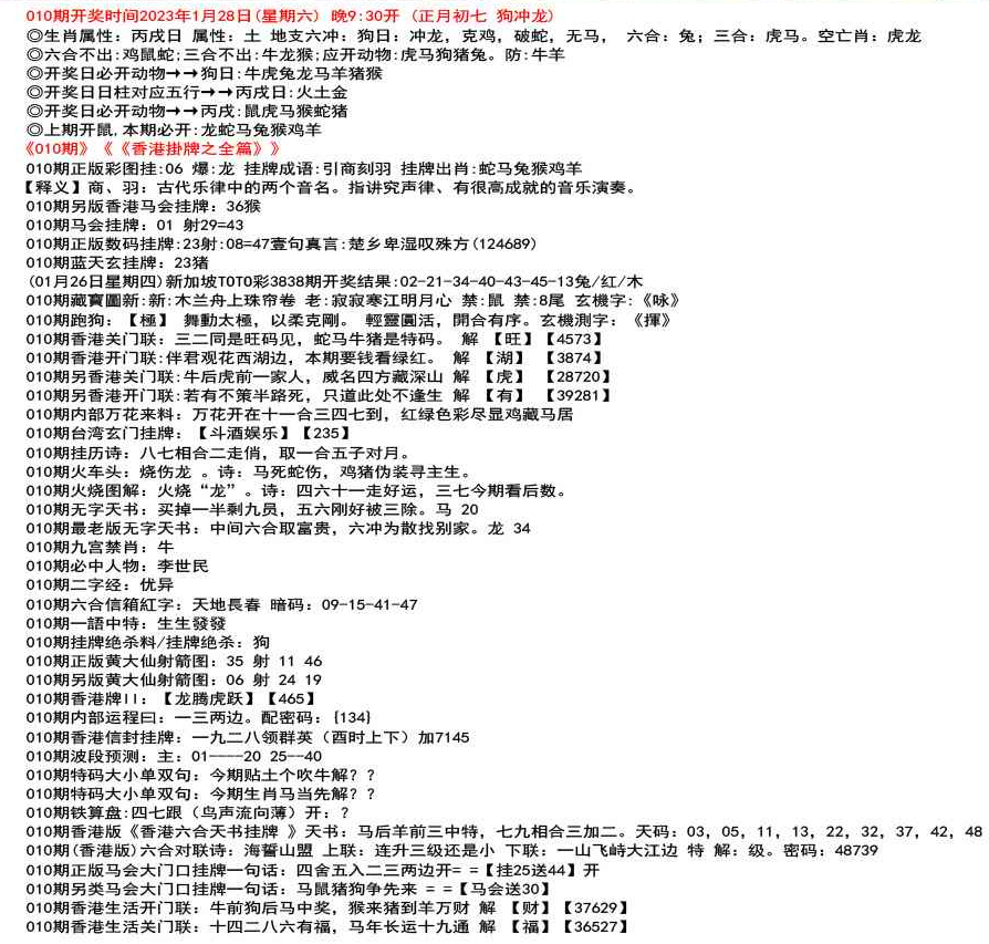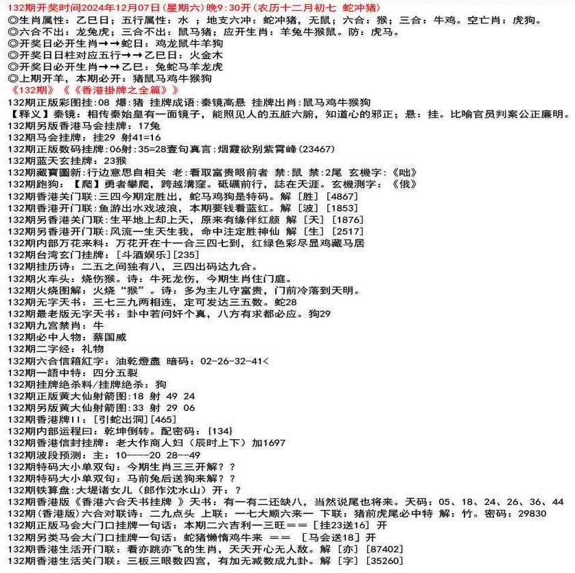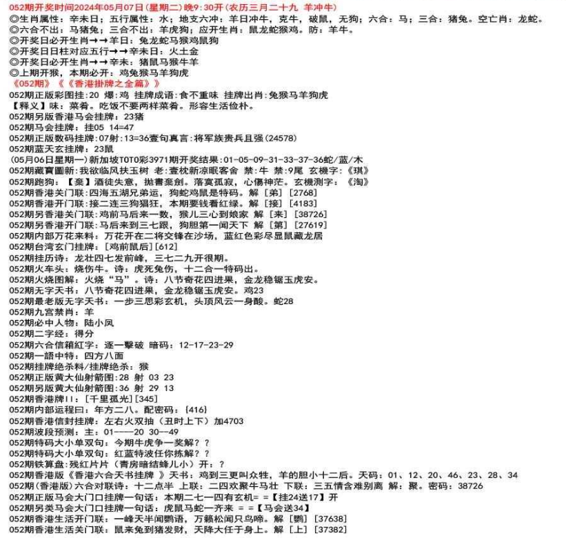 ◎六合不出:牛龙猴;三合不出:鼠蛇鸡;应开动物:羊兔猪虎狗。防:鼠马