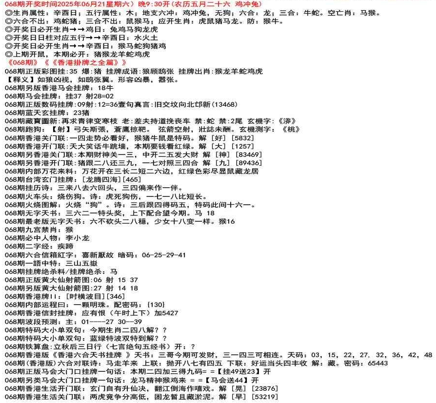 111期香港生活关门联:鸡前马后来一数,猴儿三心到娘家 解 【来】【38726】