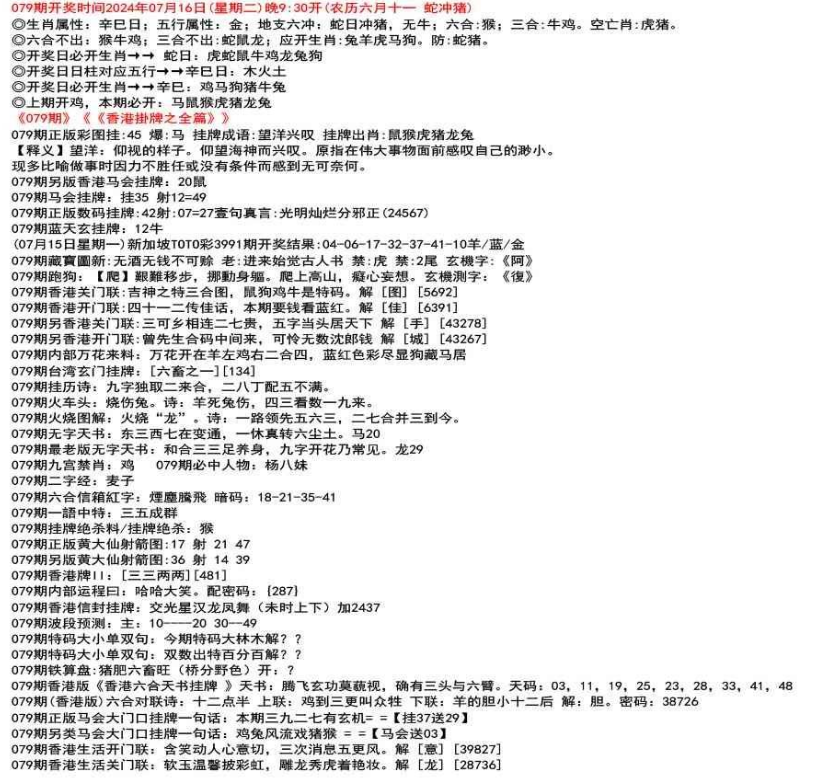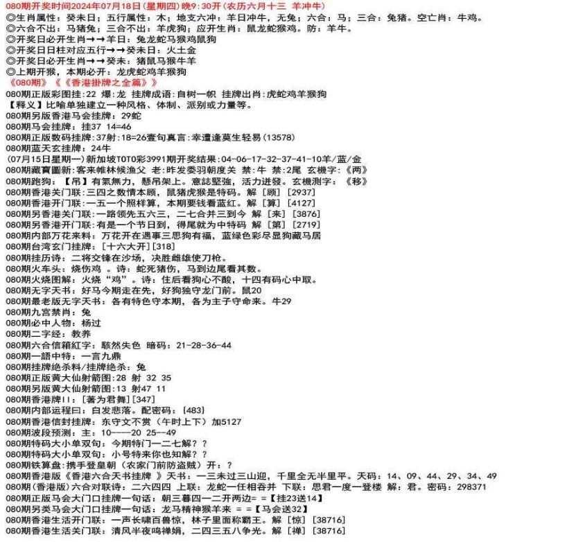 111期(香港版)六合对联诗:三三足养 上联:头在天上脚落地 下联:说是龙来假一字 解:落。密码:38729